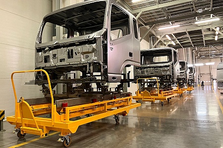 В конце февраля 2025 года первые серийные кабины Компас 9 были отправлены в службу окраски завода каркасов кабин ООО «Тракс Восток Рус» в Набережных Челнах. Ранее окраска кабин Компас производилась на прессово-рамном заводе ПАО «КАМАЗ».